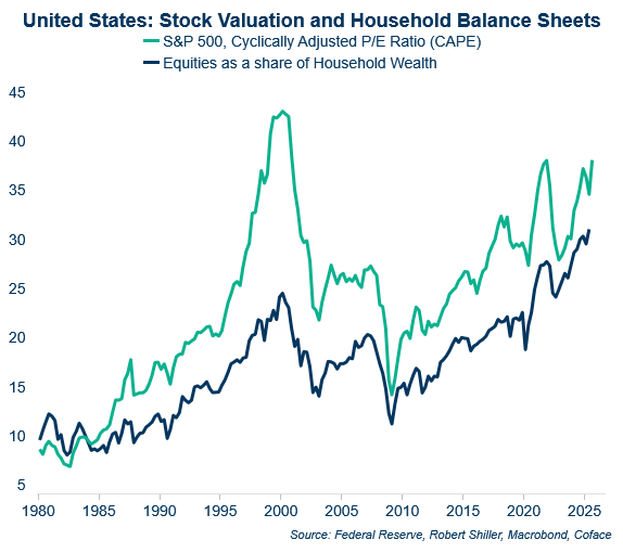 Por ello, mantenemos nuestra previsión de un crecimiento del PIB ligeramente inferior al 2% para 2025 y 2026, lo que significa que no incorporamos un gran desplome bursátil en nuestro escenario base. Sin embargo, quienes estén expuestos a la economía estadounidense deben tener presente que algunos de sus fundamentos clave siguen siendo frágiles.